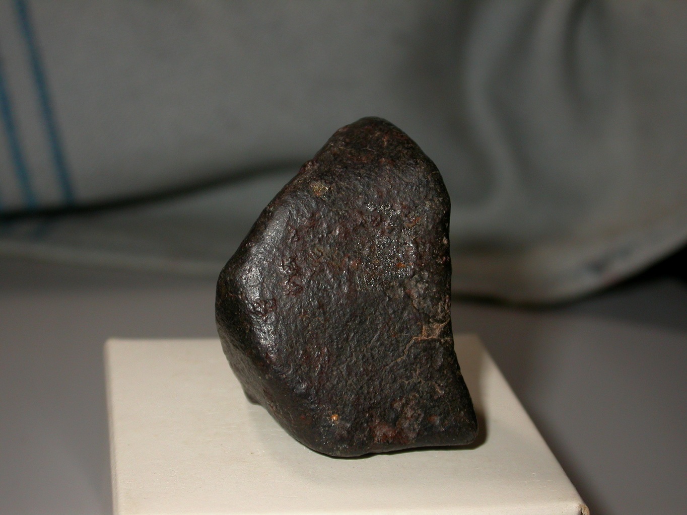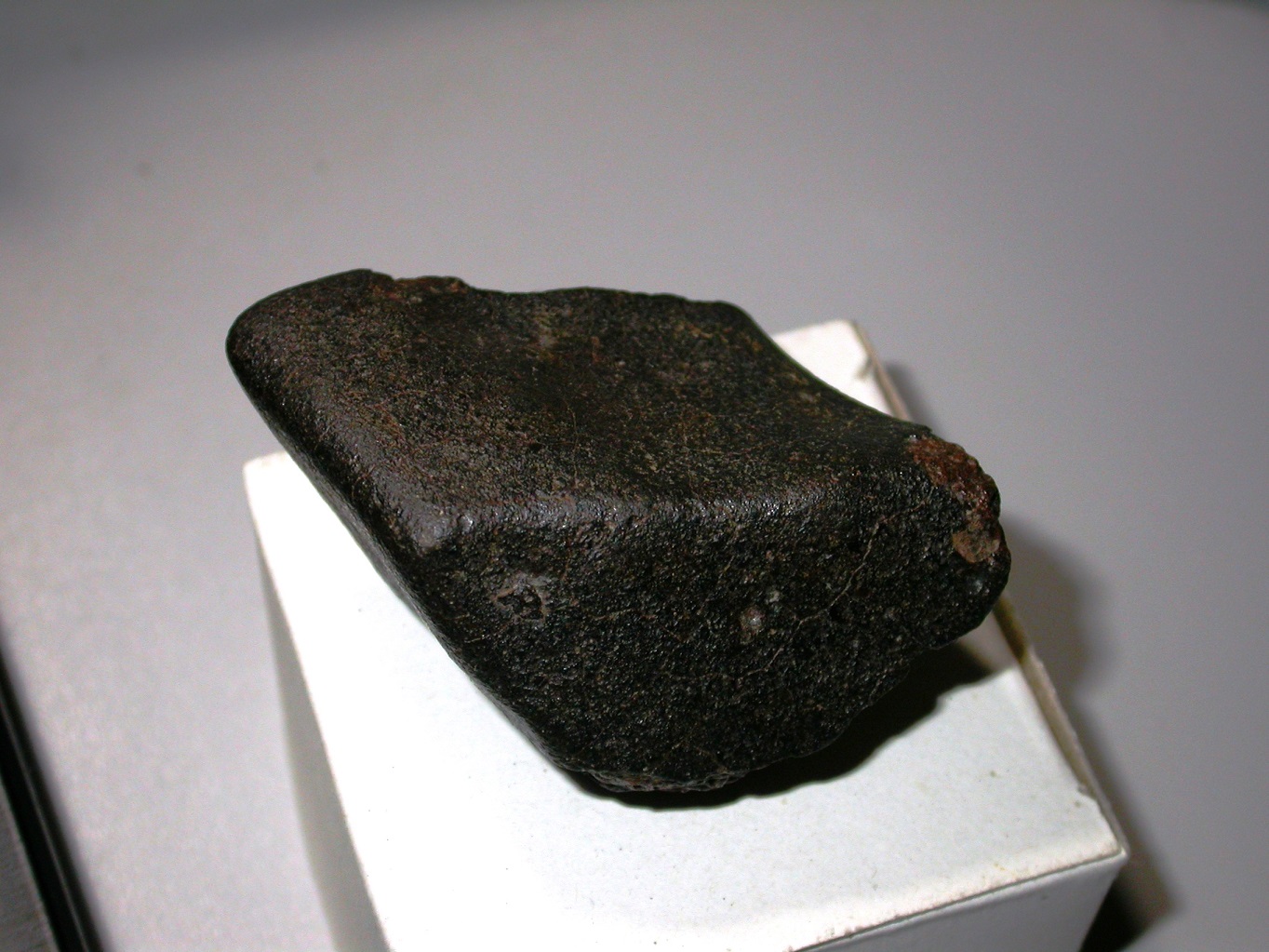 Bel frammento di condrite a bassissimo contenuto di ferro, buona porzione di crosta di fusione primaria e secondaria sul lato. Piccoli regmaglipti nella parte superiore.