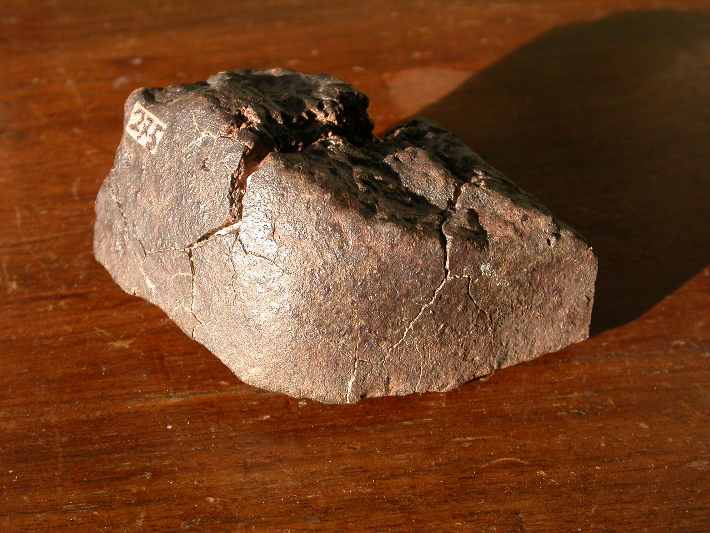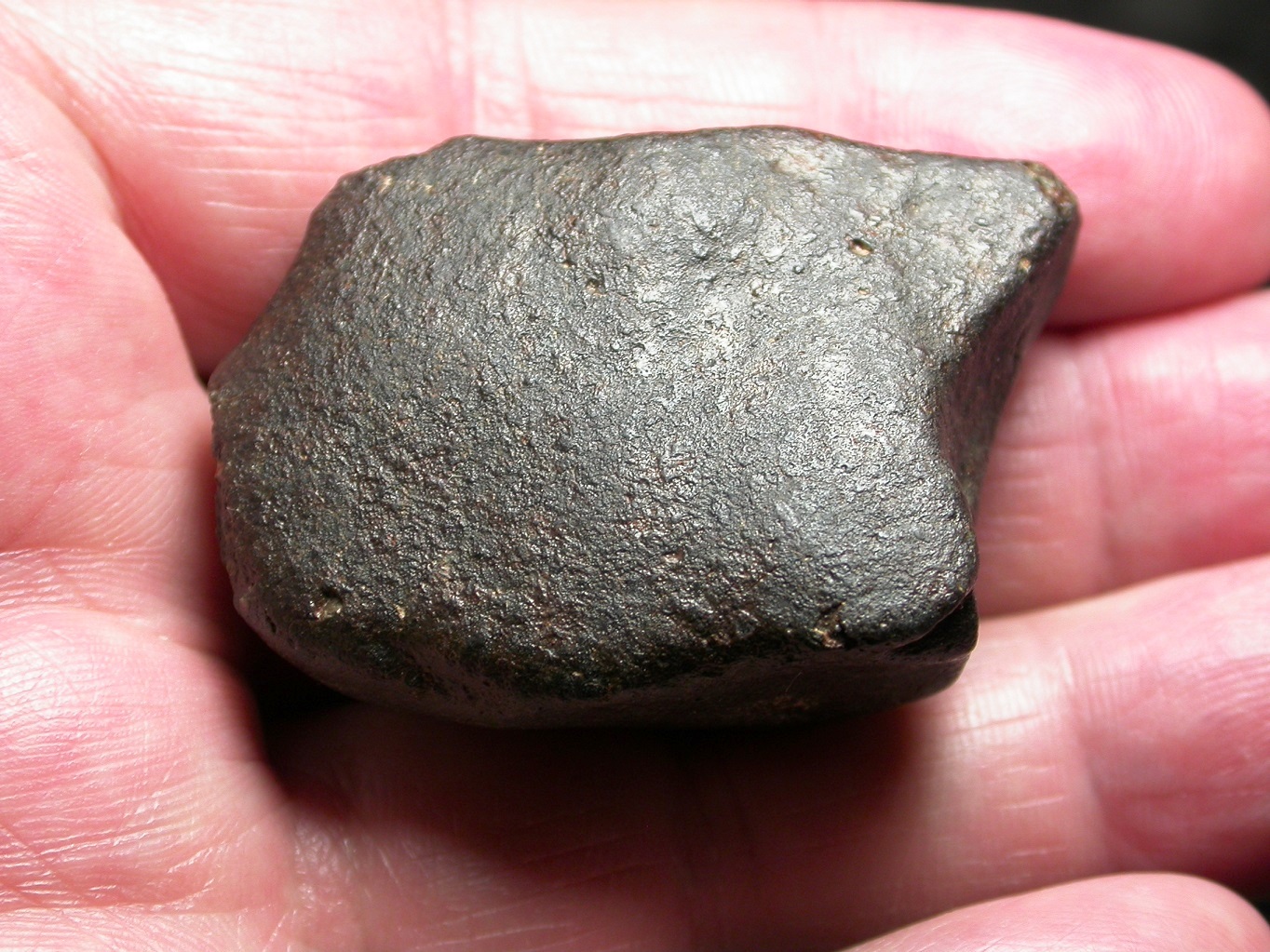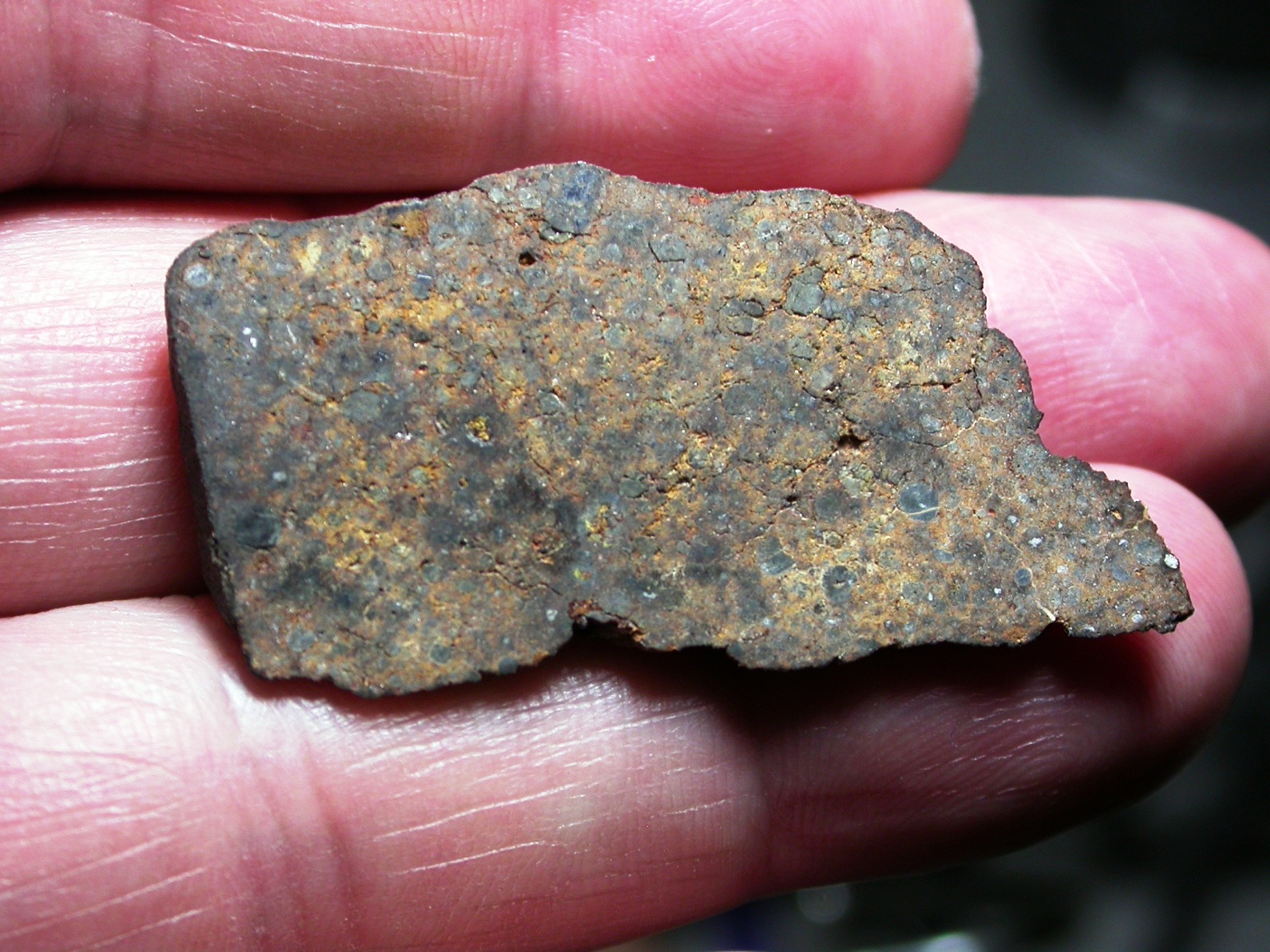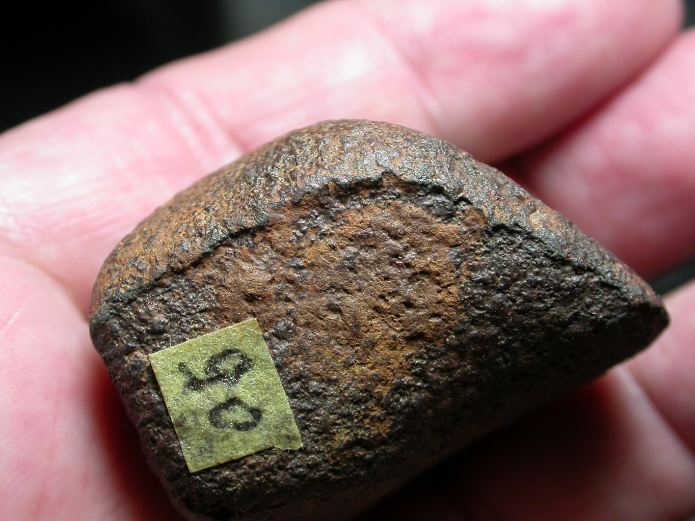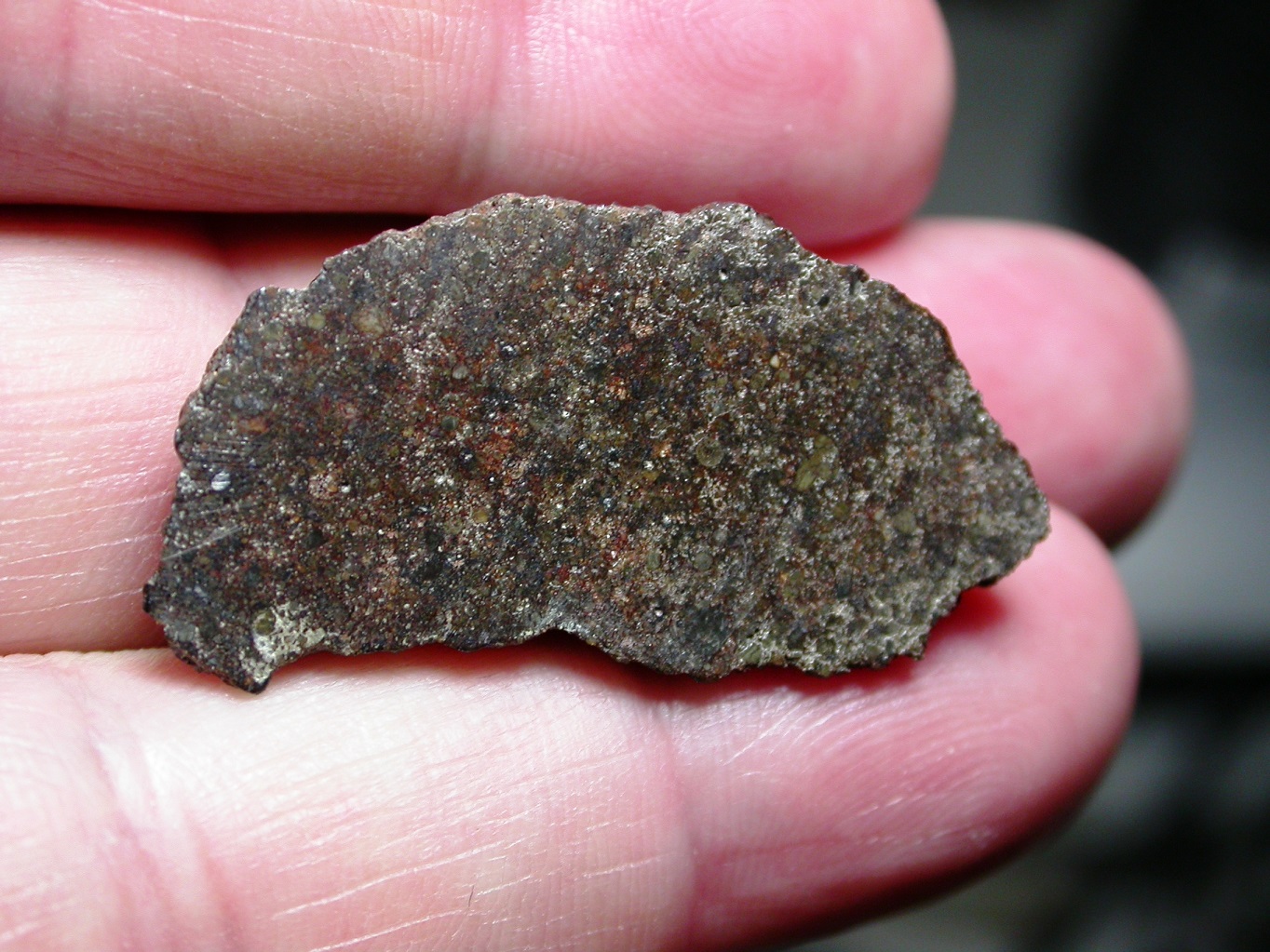 Ottima condrite, frammentata ma con almeno il 60% di crosta. Poco contenuto di ferro, forse L6.