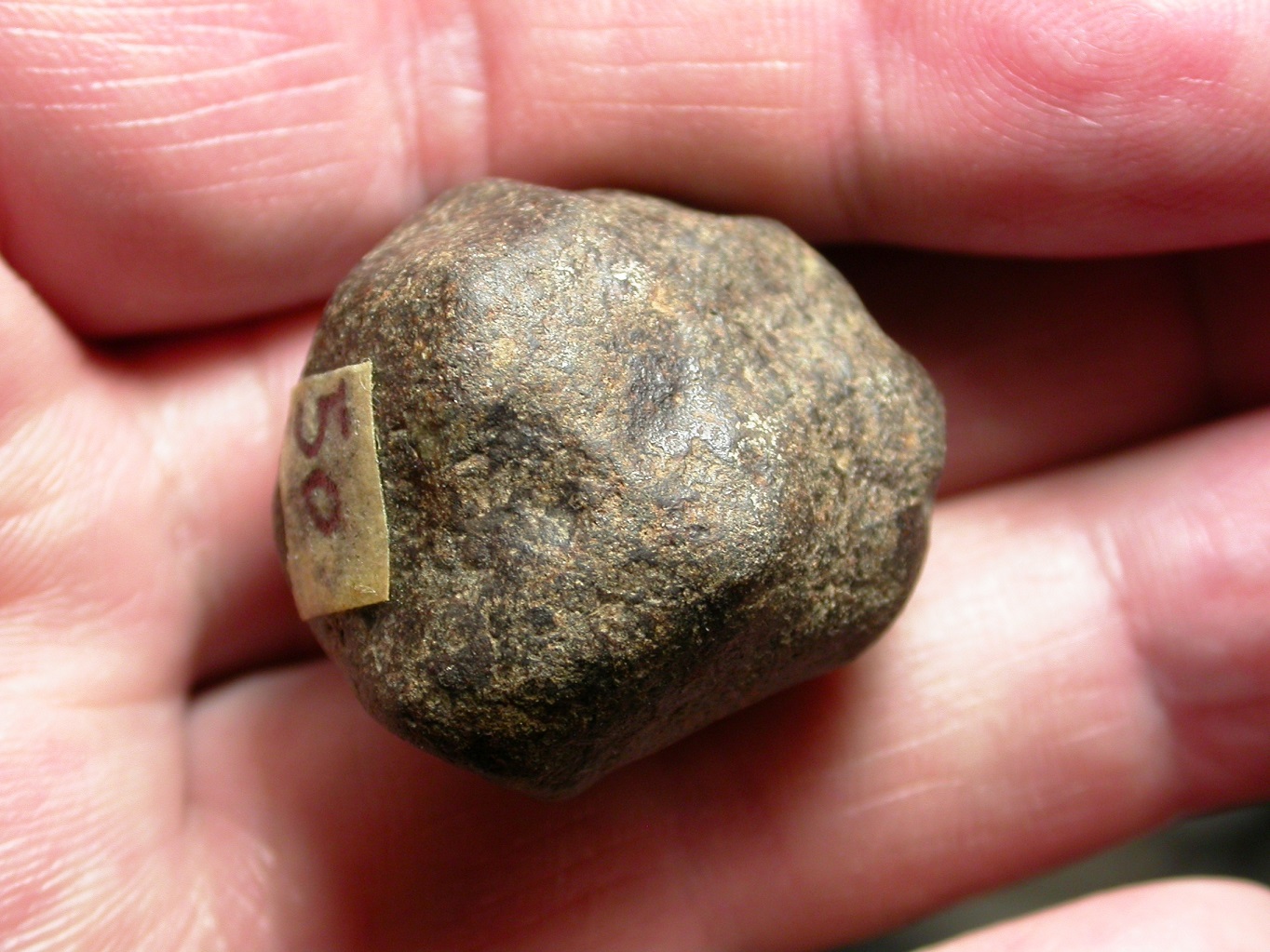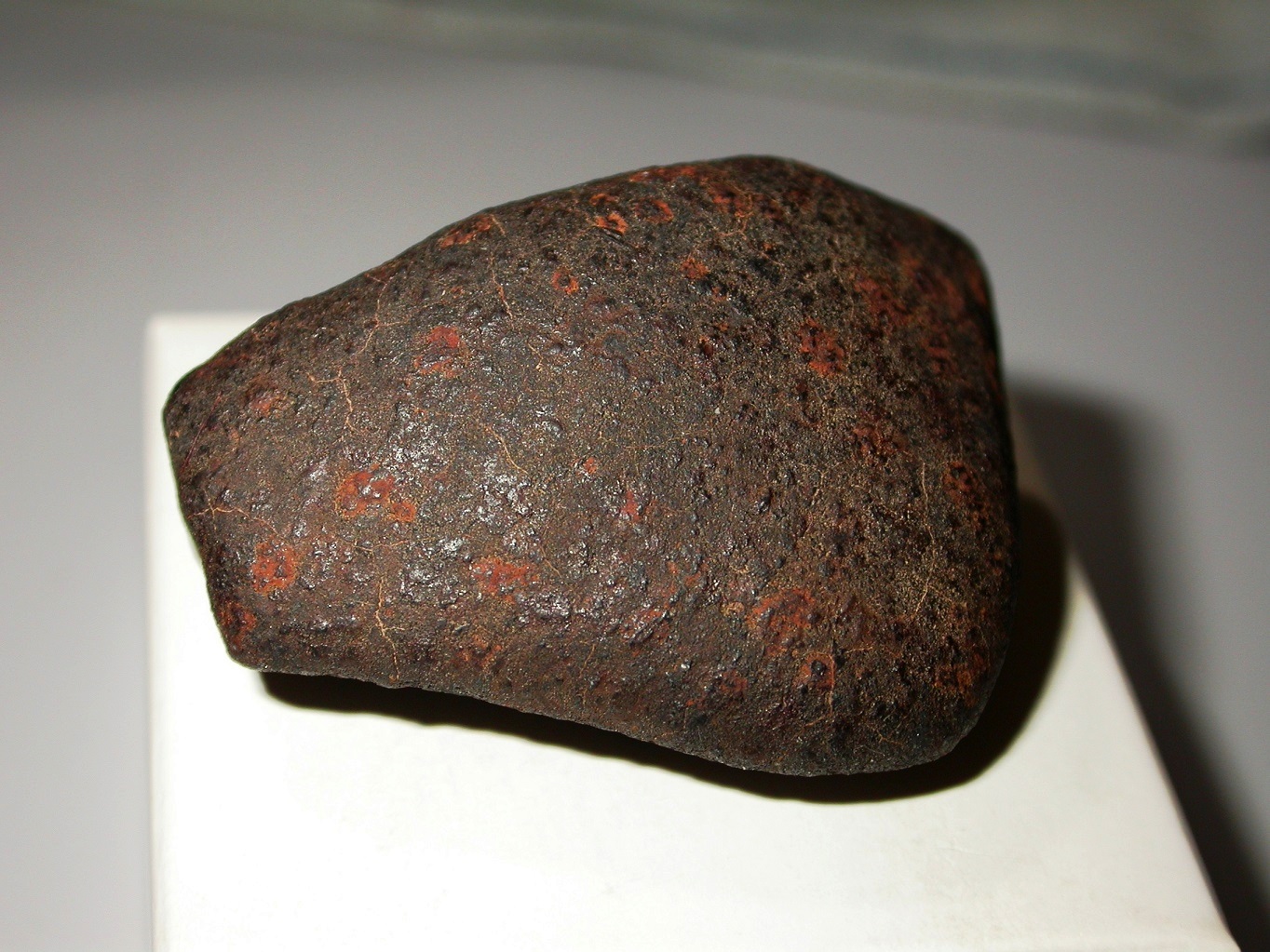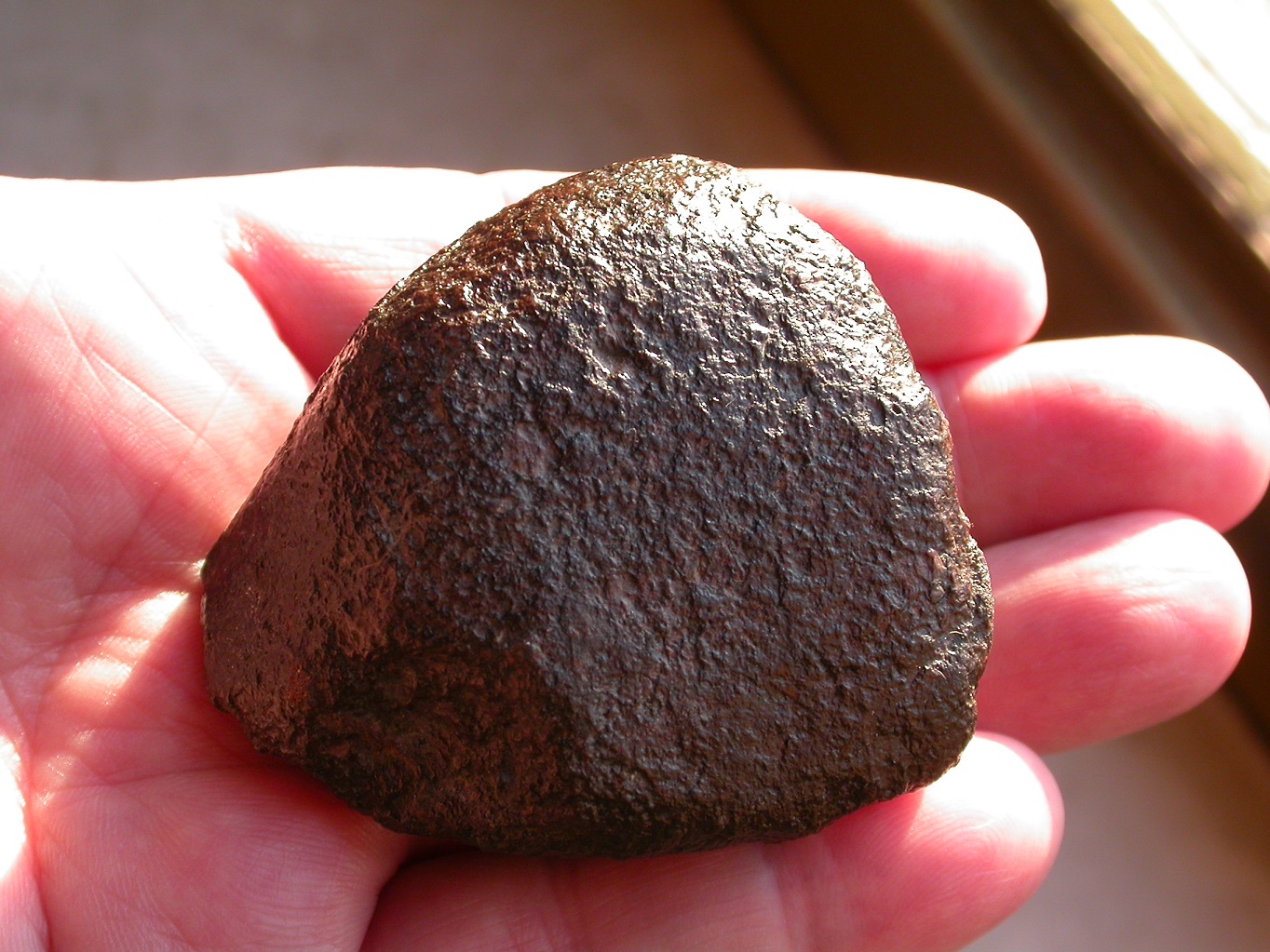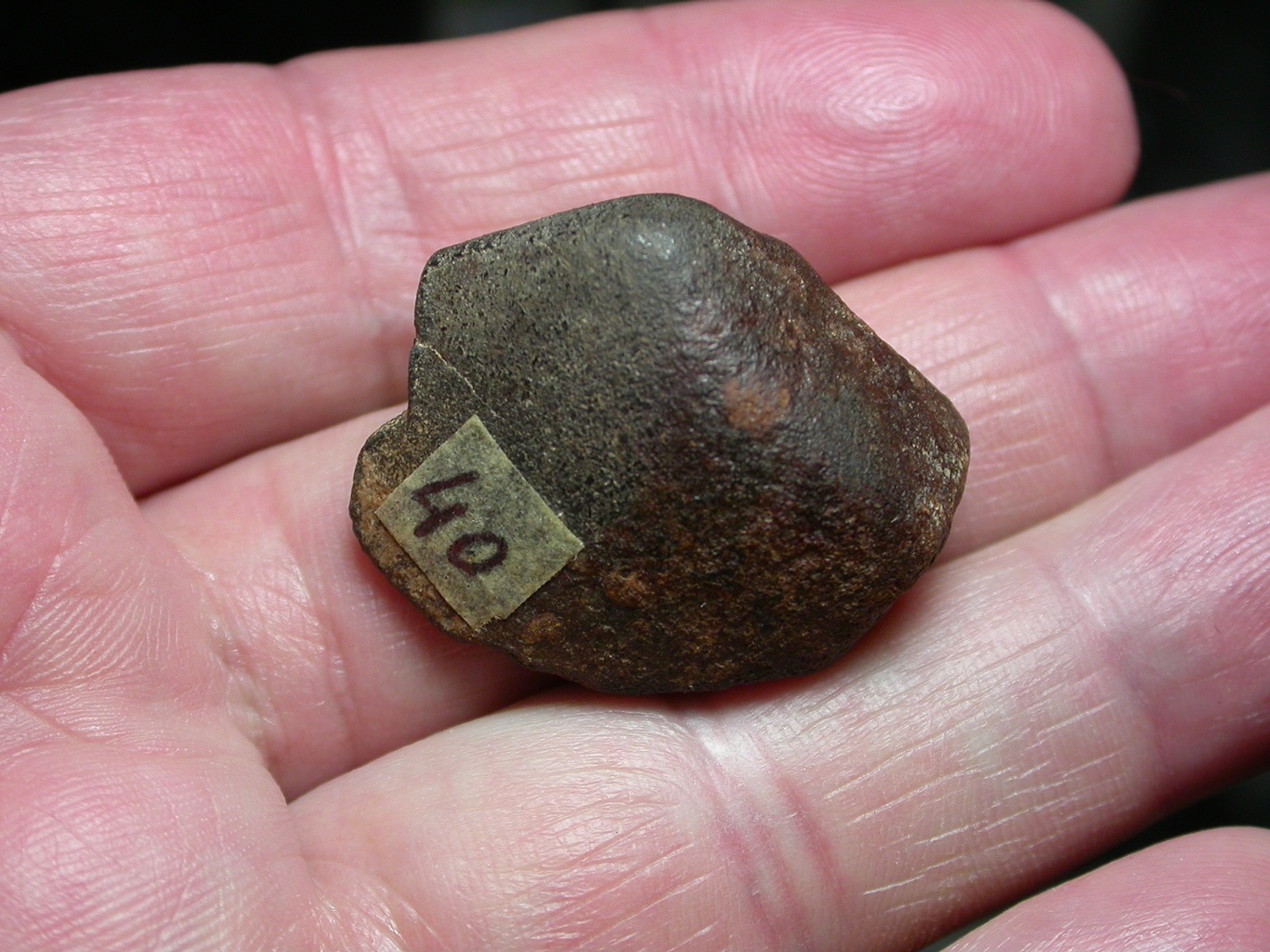 Ottima condrite, frammentata ma con almeno il 60% di crosta. Poco contenuto di ferro, forse L6.