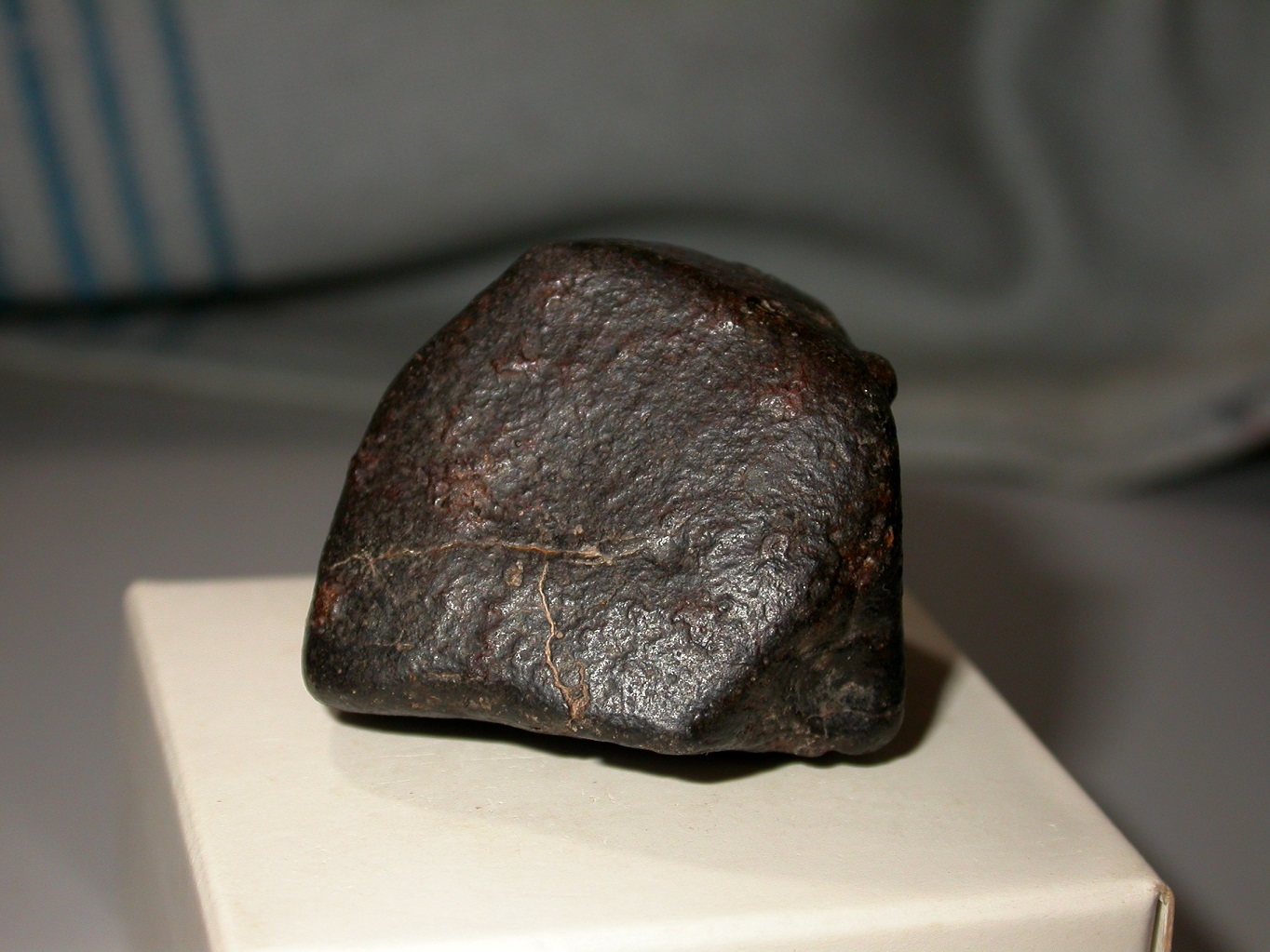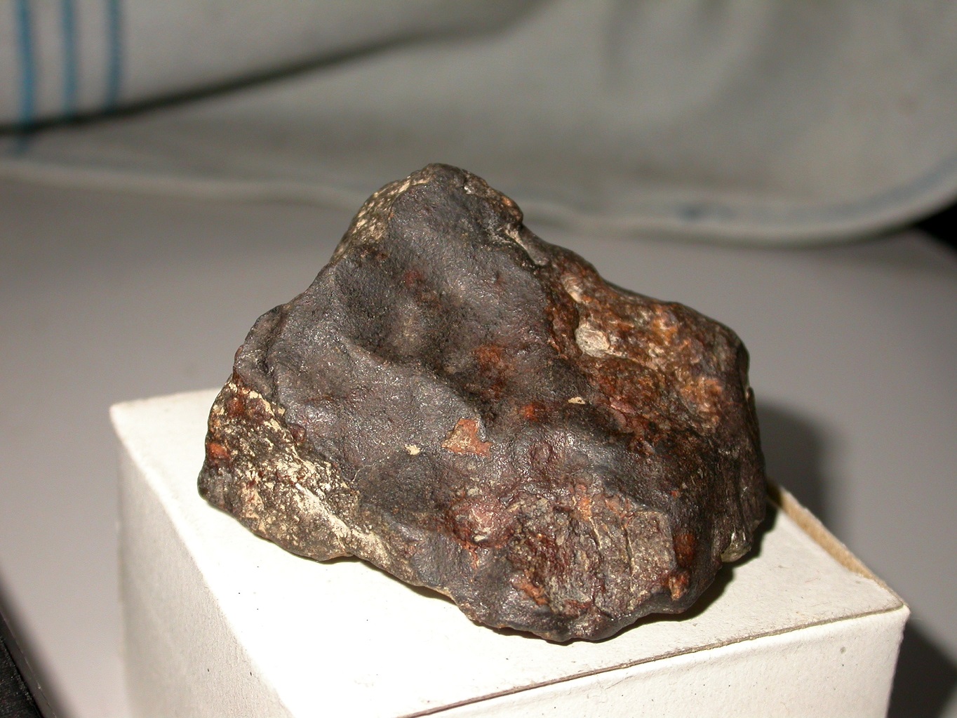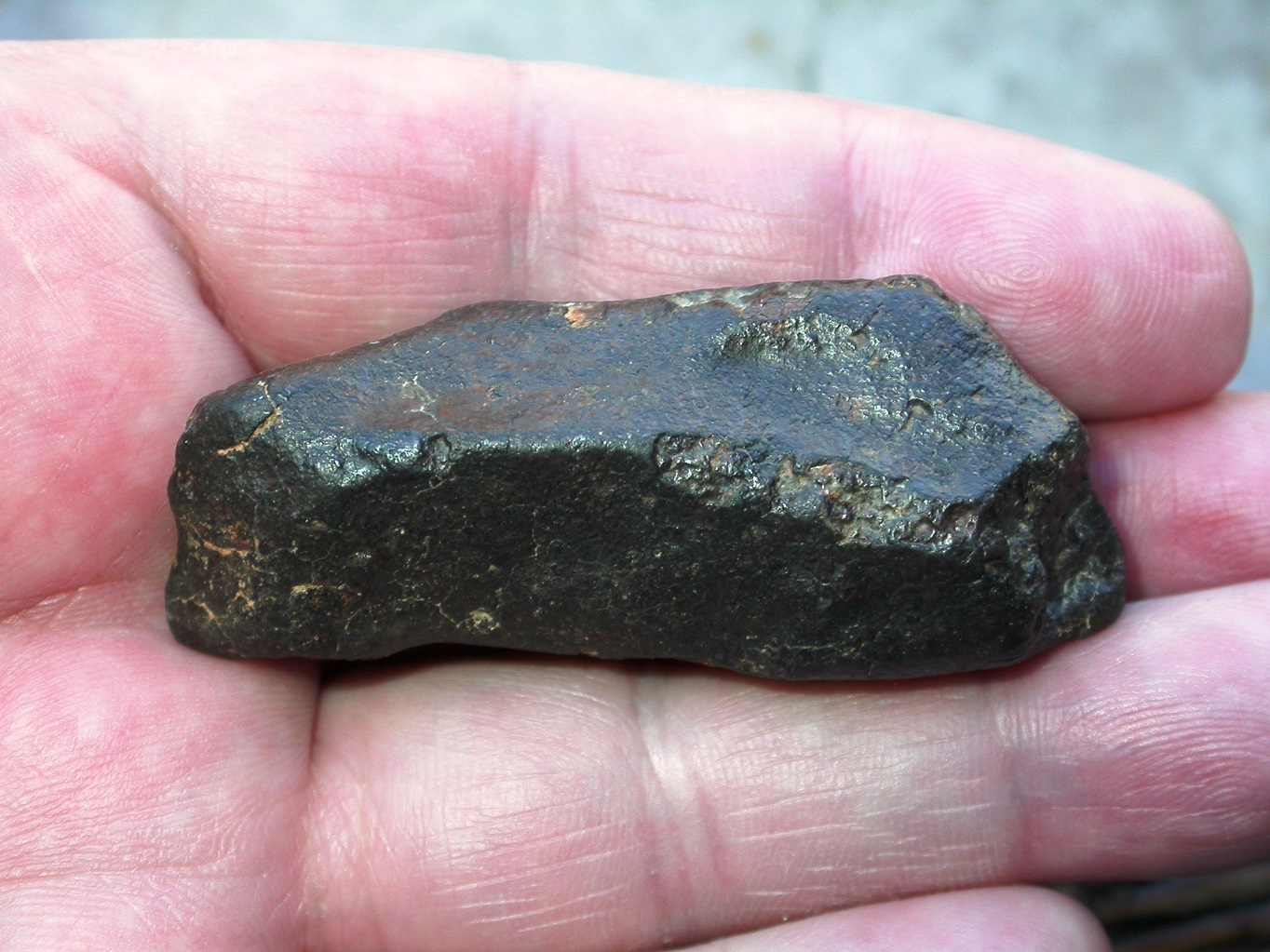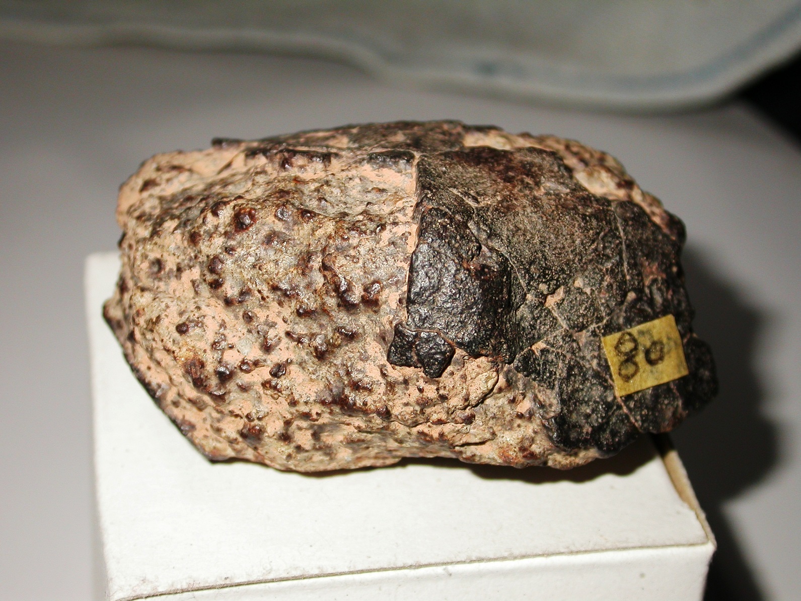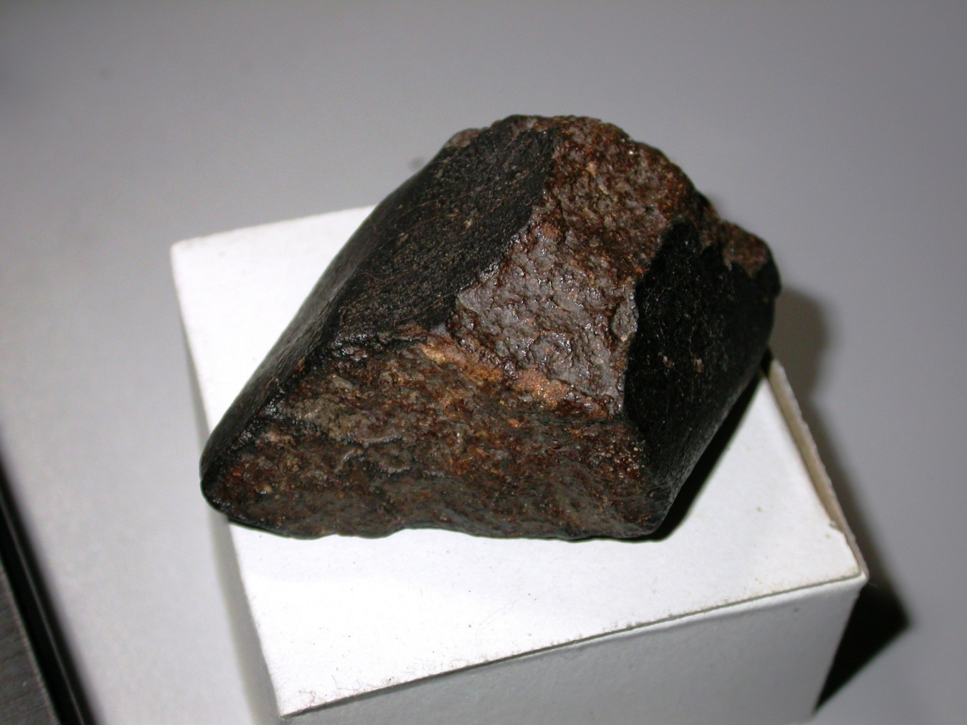 Ottima condrite, frammentata ma con almeno il 60% di crosta. Poco contenuto di ferro, forse L6.