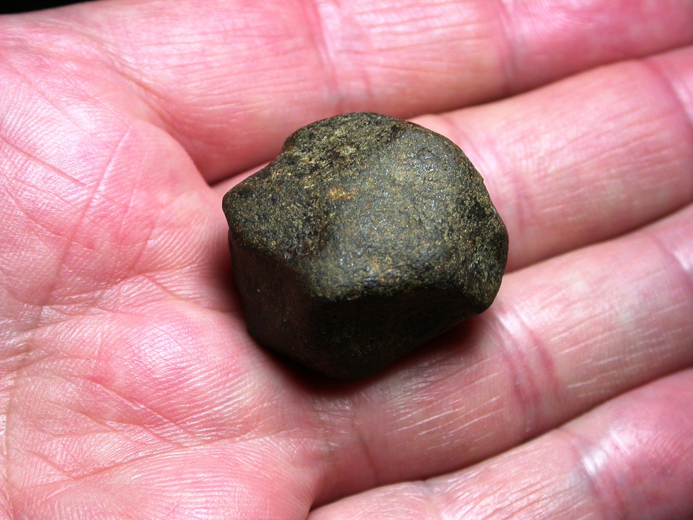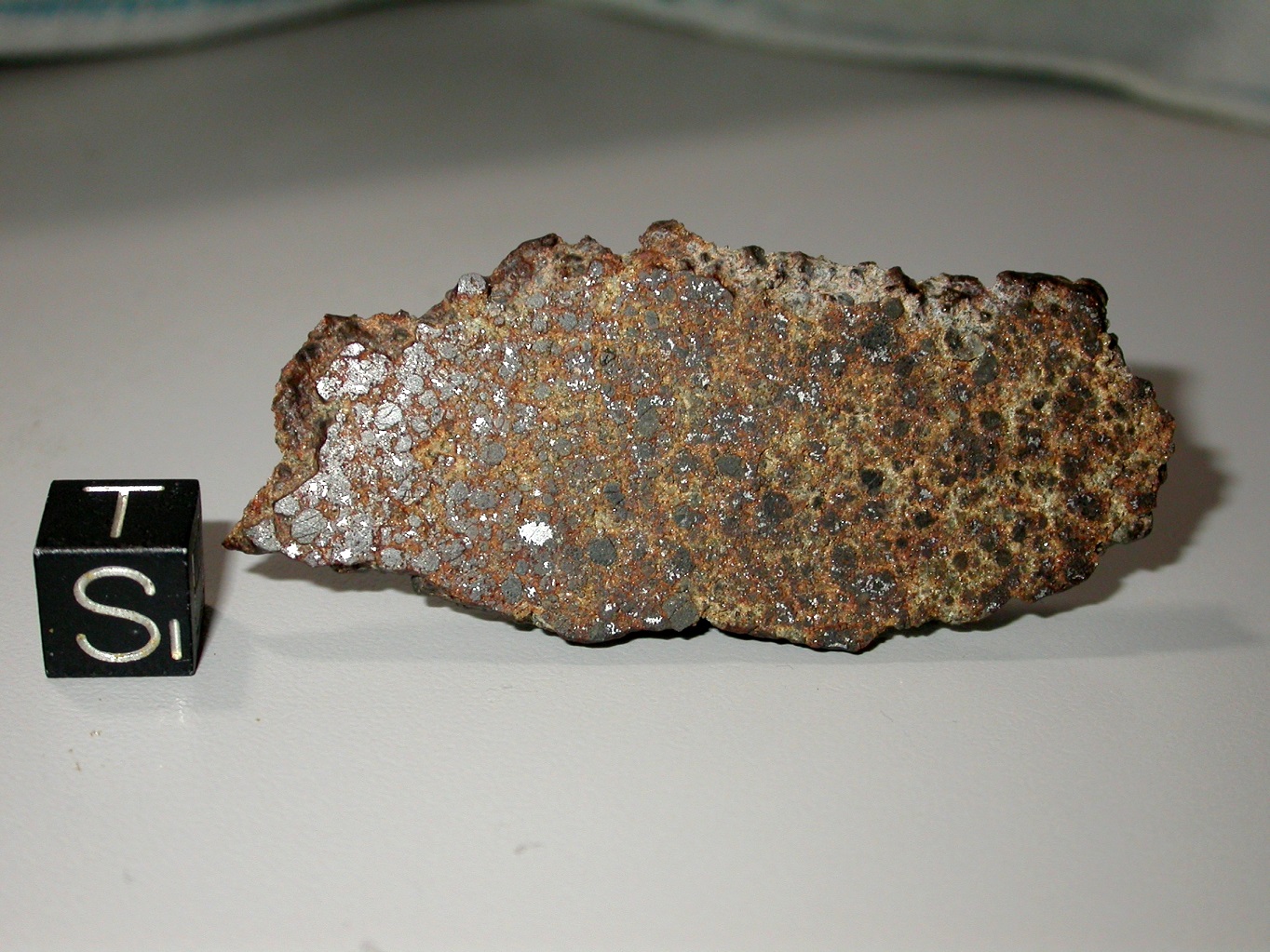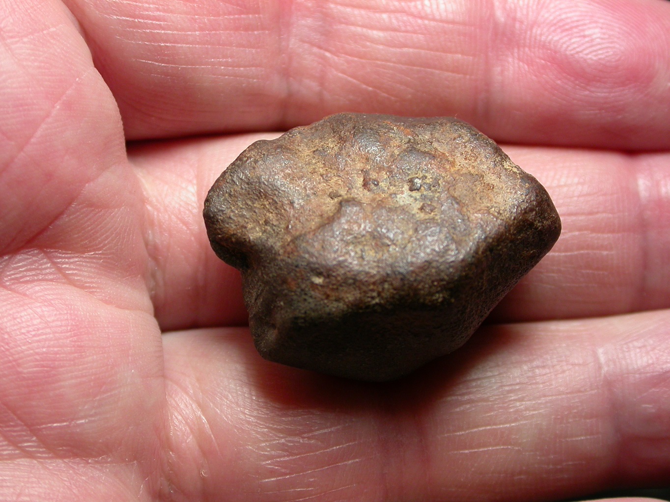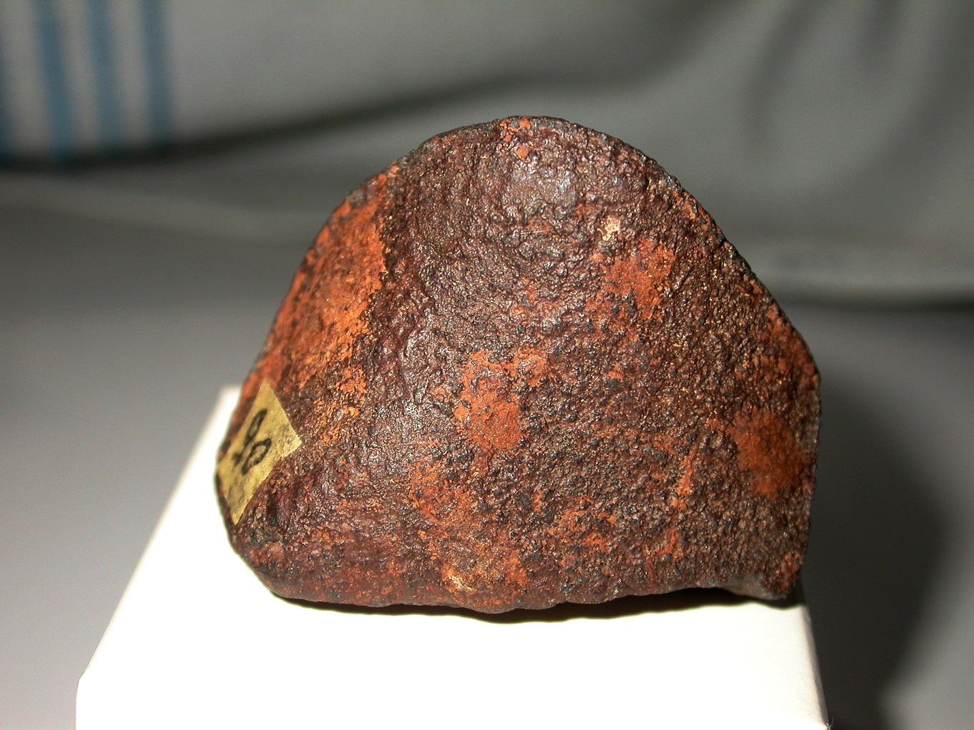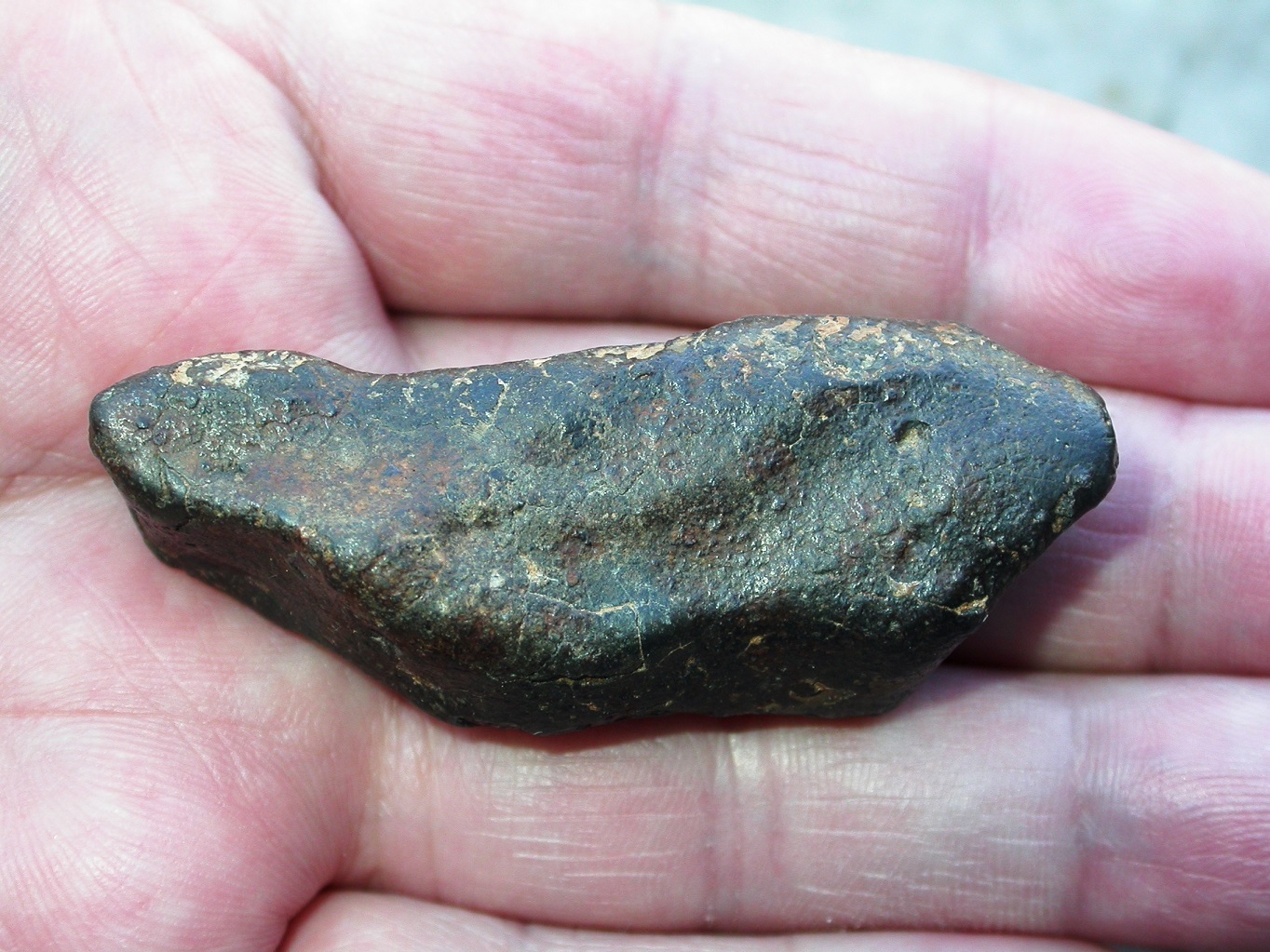 Ottima condrite, frammentata ma con almeno il 60% di crosta. Poco contenuto di ferro, forse L6.