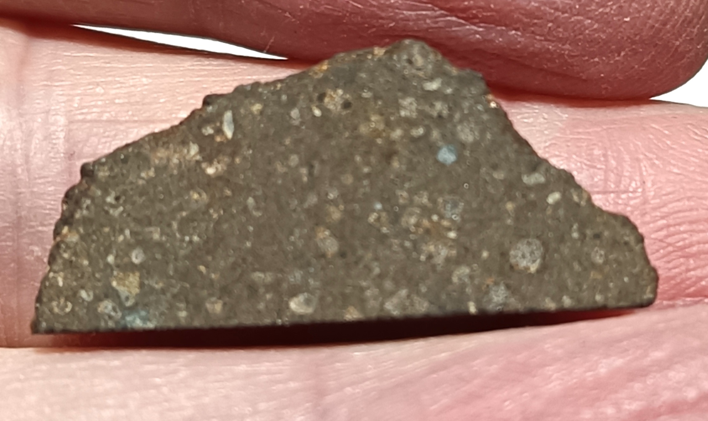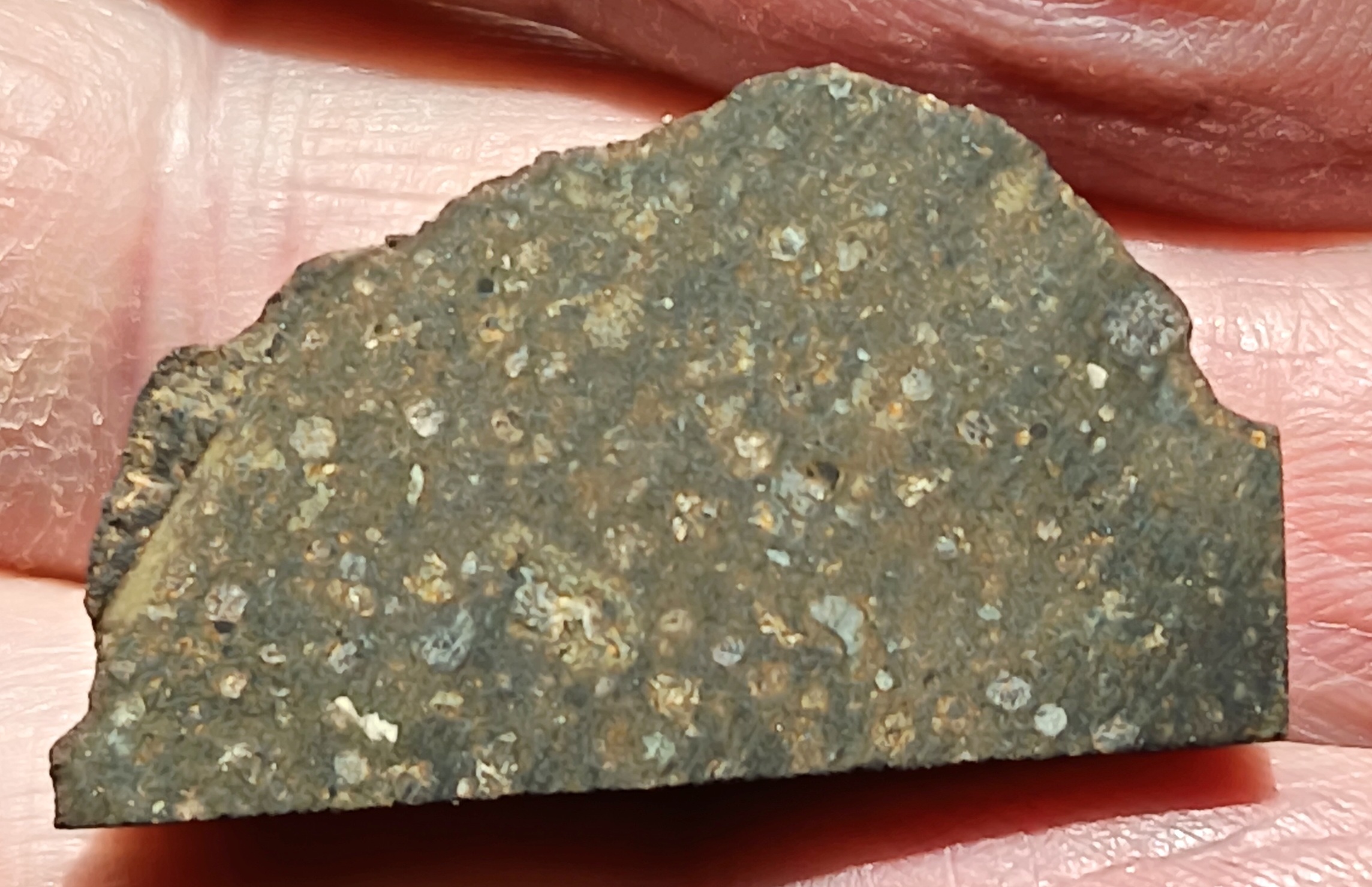 NWA 18248 - Algeria - Condrite carbonacea CK3 Anno ritrovamento: 2025 Quantità recuperata: 558g Spettacolare e rara meteorite, condrite carbonacea tipo CK, raro sottogruppo. Condrule ben visibili come in foto, pochissima alterazione e nessuna vena di shock, materiale compatto. Analizzata, classificata e pubblicata sul Bulletin con analisi dettagliate. Tutta la meteorite è in mio possesso al netto del materiale utilizzato per le analisi. Peso: 506g (massa principale) Clicca la foto per la galleria |